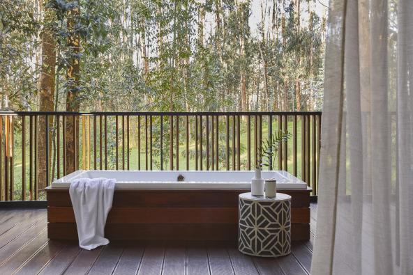 Suas acomodações, decoradas com arte local e cores vibrantes, permitem ao hóspede desconexão e contato ininterrupto com a natureza: projetadas aos pés da floresta e com design inspirado nas próprias belezas ao redor, ainda há, em algumas delas, decks privativos, varandas e piscinas particulares. Em harmonia com a natureza, a cozinha também celebra o que há de melhor em Ruanda, com sabores locais autênticos que se inspiram nas cores, texturas e aromas do destino – o restaurante Nest se dedica a pratos sazonais e o Nest Bar é ideal para apreciar coquetéis de assinatura. Na lista de atrativos, atividades de bem-estar, passeios para observação de gorilas e experiências para explorar as belezas da África Oriental.