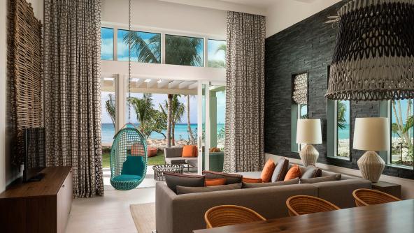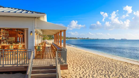 Na icônica Seven Mile Beach, em frente ao Mar do Caribe.