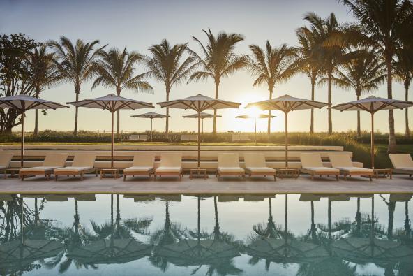 Em meio às praias do norte de Miami. Projetado pelo arquiteto Richard Meier, com colaboração do designer Joseph Dirand, o hotel conta com cinco Estúdios Cabana voltados para o oceano e revela cores serenas, inspiradas no clima litorâneo de Surfside. O restaurante Le Sirenuse, com o chef Antonio Mermolia à frente, privilegia a gastronomia da Costa Amalfitana, além de dispor de um bar de champanhe homônimo.