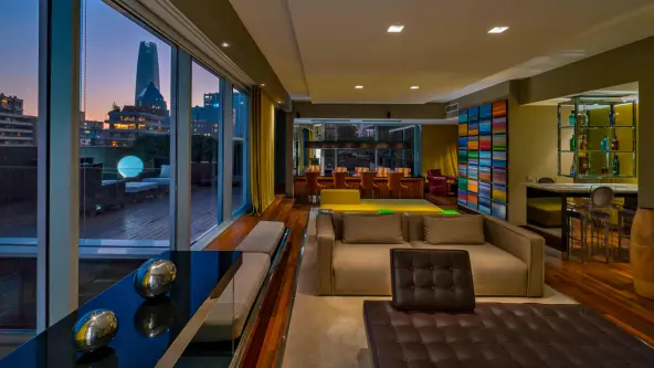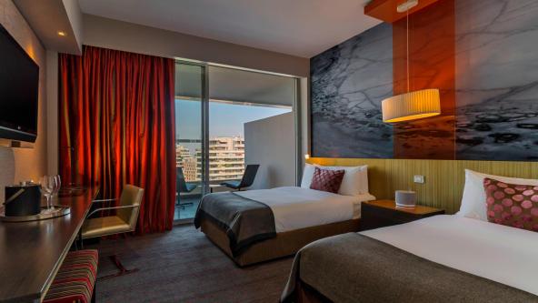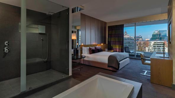 Seus quartos são amplos e decorados em estilo minimalista. Nos restaurantes, os visitantes saboreiam as cozinhas mediterrânea, chilena e a fusão da asiática com a peruana. Destaque especial para a piscina na cobertura, com vista panorâmica para a cidade.