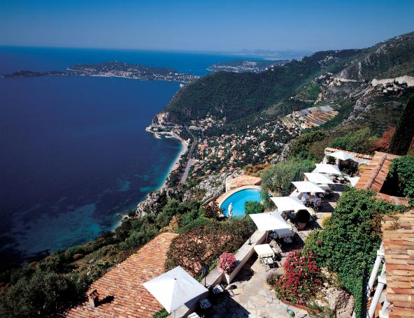 O Château de La Chèvre d’Or debruça-se sobre uma vista esplendorosa do Mediterrâneo. Repleto de jardins com esculturas, fontes e diferentes flores, o hotel cria o ambiente perfeito para se desconectar. Seus apenas 30 quartos e suítes contam com design contemporâneo que combina naturalmente com as deslumbrantes vistas para os jardins ou o mar. Entre as opções gastronômicas, o destaque fica por conta do restaurante La Chevre d’Or, com duas estrelas no guia Michelin.
