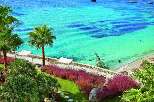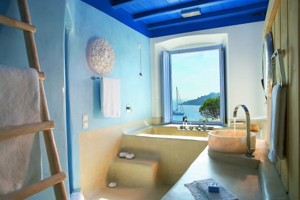 Seus bangalôs, suítes e villas contam com vistas privilegiadas, além de conforto e atenção aos detalhes. Entre as opções gastronômicas está o Aegean Poets, que oferece o melhor da culinária grega e frutos do mar. No spa Exilir Fitness Gallery, os visitantes relaxam com diversos tipos de tratamentos.
