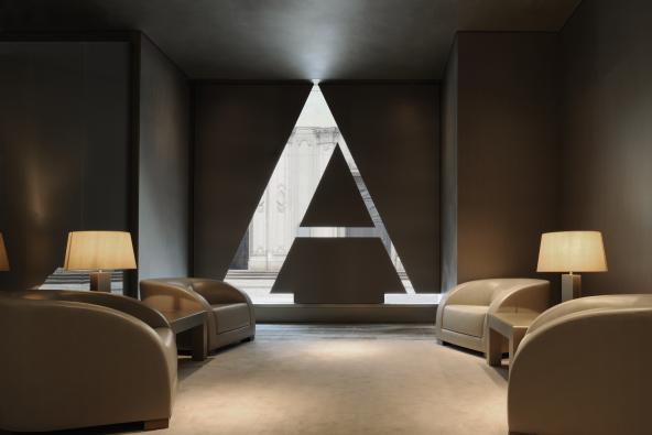 Em plena Via Manzoni, no coração do quadrilátero da moda de Milão.