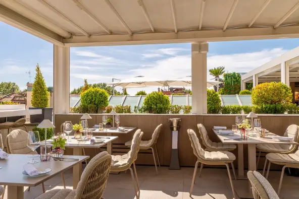 O The First Roma Art conta com suítes de design minimalista e moderno, com obras de arte italianas contemporâneas e privilegiando o conforto do hóspede. Na gastronomia, o rooftop Acquaroof e o restaurante Acquolina, estrelado pelo Guia Michelin, se destacam com autênticos sabores locais. Na lista de atrativos, os hóspedes têm à disposição uma área fitness bem equipada com treinos e programações personalizados.