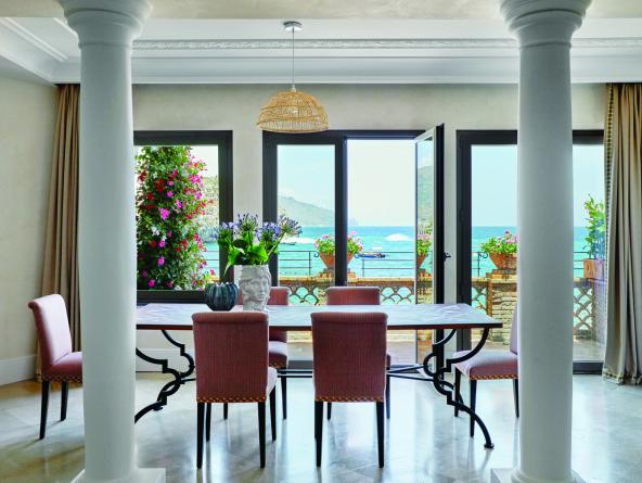 O hotel está instalado em uma casa de 1830, cercado de vegetação exuberante e ricamente decorado com pinturas e antiguidades. Seus 63 quartos e suítes são espaçosos e a maioria com terraço, onde os visitantes podem apreciar a bela região. O restaurante Oliviero serve especialidades locais e possui um terraço panorâmico com vista para a Costa da Calábria.