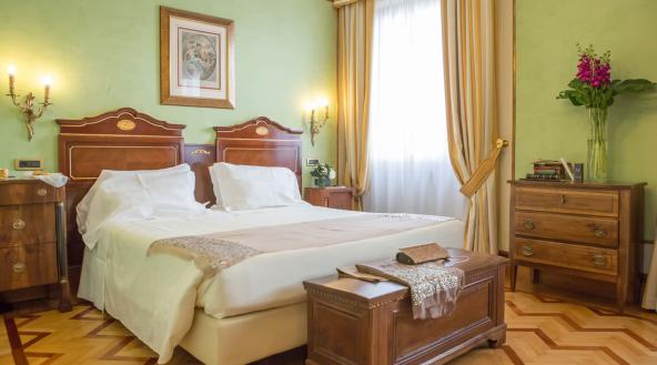 O Due Torri está instalado em um palácio do século 14 e suas suítes, com design personalizado, ostentam o charme e estilo clássico inspirados nas épocas antigas. O restaurante Due Torri Lounge & Restaurant e o Panoramic Terrace Grill são destaques da gastronomia do hotel, além do Winter Garden e do All’Aquila Restaurant.