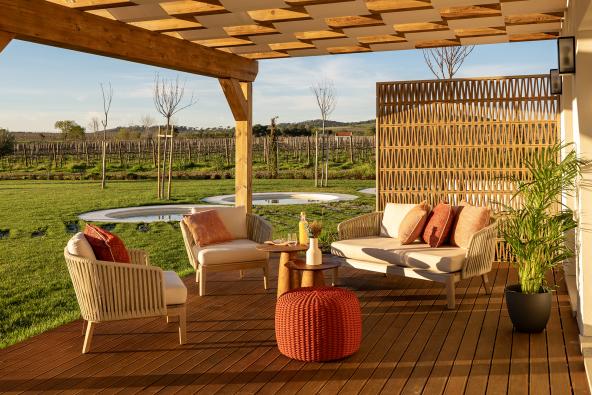 Os hóspedes podem se acomodar em 22 alojamentos, divididos em seis categorias, todos equipados de comodidades como lareiras, terraços privativos e duchas ao ar livre e rodeados por mais de 30 hectares de vinhas, jardins e cascatas. O cenário deslumbrante também pode ser apreciado com uma taça à mão, no The Grape Rooftop; ou à beira da piscina, no The Estate Lounge. Já o The Wine Restaurant serve pratos com ingredientes locais e sazonais, em harmonia com vinhos que refletem a rica herança alentejana. A Quinta ainda tem à disposição cavalgadas pelos vinhedos e a experiência “Wine Lovers”, degustação de seis vinhos premium, conduzida pelo enólogo responsável ou sommelier. O passeio privado “Descobrindo o Alqueva”, por sua vez, explora o maior lago artificial da Europa, de mais de 250 quilômetros quadrados.
