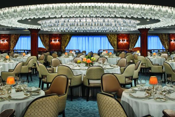 O alto padrão do Insígnia pode ser percebido em seus serviços, estrutura, decoração e atividades no interior do navio. Elegância e conforto são as palavras que ditam o conceito da embarcação refletindo em uma viagem tranquila e surpreendente. Saboreie o melhor da culinária italiana no Toscana. Apresentados em elegantes porcelanas Versace de design personalizado, os pratos preparados refletem a paixão presente na culinária da Itália. O jantar pode começar com o carpaccio de polvo acompanhado por vinagrete de champagne ou o timbale de alcachofra e queijo parmesão com molho de trufa negra.