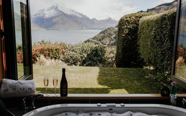 Em uma região onde paisagens fascinantes e vida ao ar livre ditam o ritmo do dia a dia, as nove villas do Azur Lodge e seus terraços particulares têm vistas para as montanhas e para o Lago Wakatipu, proporcionando integração com a natureza e privacidade total. Para os casais, são reservadas massagens no spa, visitas e degustação em vinícolas e passeios às piscinas termais no alto das falésias, com vista para o Canyon Shotover River.